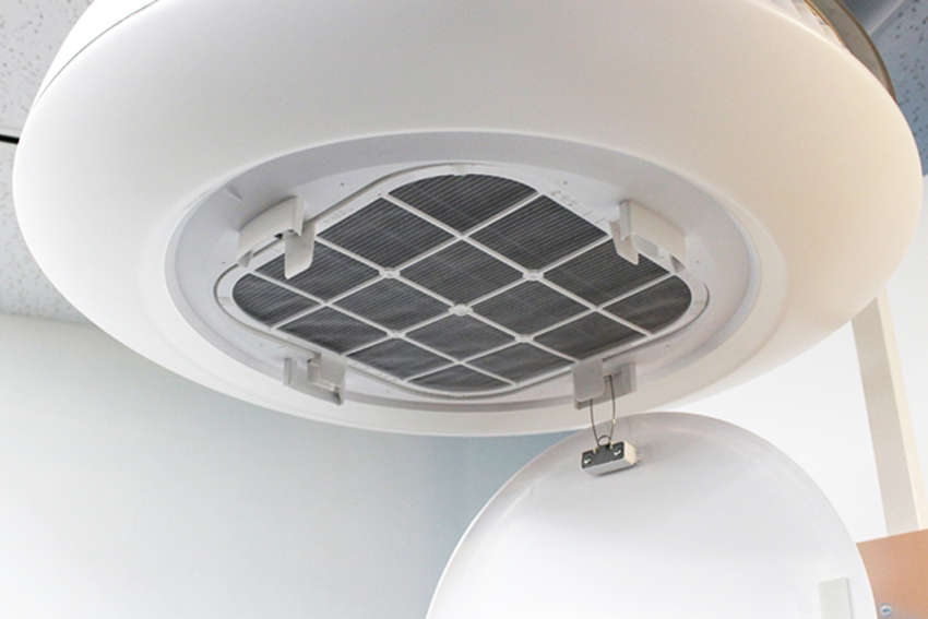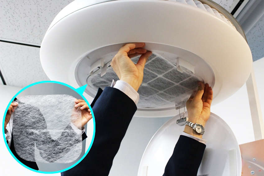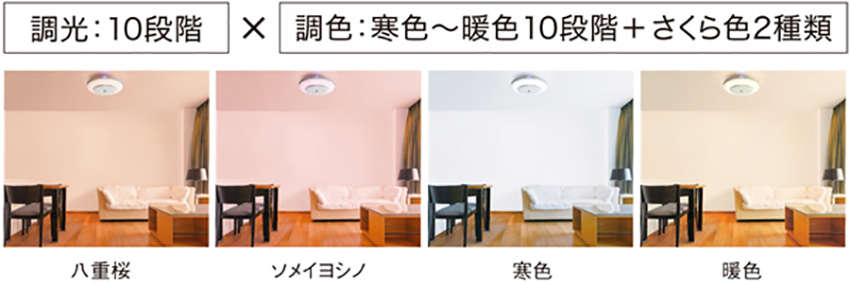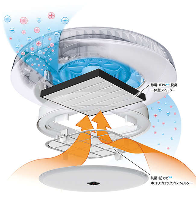 外形是简约的白色吸顶灯,中央是空气清净机,旁边围绕环状 LED 灯具。空气滤净部分同样使用静电 HEPA 滤网,且会释放「自动除菌离子」Plasmacluster 消除异味,顶部还设有指示灯反应空气状况,空气干净时显示蓝灯,状况不佳时转为橘灯、红灯,并可将风量设定为自动,由机器决定是否开启空气清净功能。 LED 照明部分,色温从暖到冷色共有 10 阶颜色可换,并有特殊的八重樱、染井吉野樱等两种粉红色光可选,亮度也有 10 阶能调整,可依需求调整至不同情境灯光。