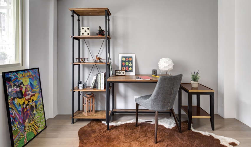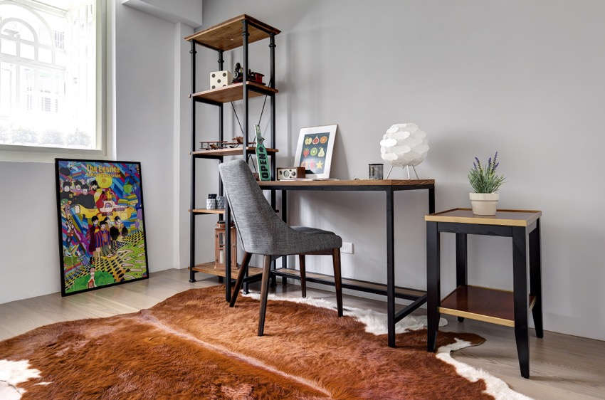 这几年很流行的工业风元素,也能单单依靠家具摆饰悄悄融入混搭风空间吗?根据设计师经验法则,没有砖墙、水泥等主视觉壁面规划,降低空间制式侷限,相对而言灵活弹性调配自由度才更高。以书房空间为例,随性选个窗边角落,利用铁件结合木头的书架、书桌、边桌等主要家具,摆上创意画作、大地色、动物纹地毯,寒冬里的温暖系工业风轻松完成。过没几个月想变动房间配置方式,只要再把卧室原木收纳横柜,甚至将阳台穿鞋椅搬过来,重新组合又是另一种生活景象,就像小时候玩乐高一样,家具也能自由配出新火花。