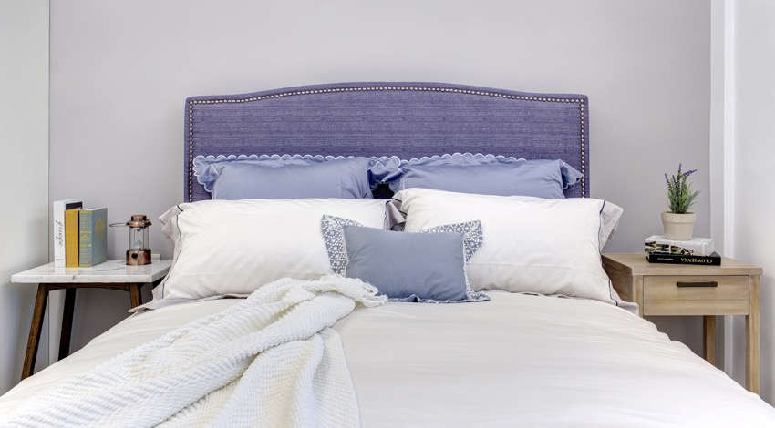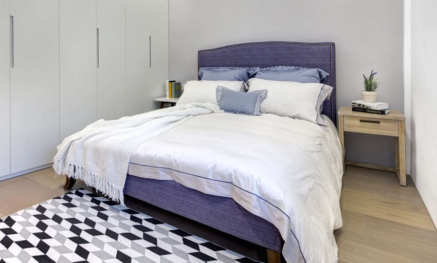 工作忙碌上班族,回到家不外乎两个选项,一个往客厅沙发依靠,另一个则是直冲卧室躺成大字型,床铺舒适与否关乎能不能整夜好眠,除了床垫挑选,设计师觉得生活舒适性应该是全方位考量,最直接的即为色彩冲击!既然要以营造舒眠环境当主题,颜色势必不能太强烈,多些宁静灰色、蓝色调,有助安定心灵,而重点主角床架建议挑选布织纹材质增加身体柔软接触,细节处点缀个性铆钉,突显屋主品味,再摆放实用便利实木床头柜、大理石边几,放置睡前阅读书本或者冷天气的一杯暖可可,皆能有效帮助顺利进入睡眠状态喔!