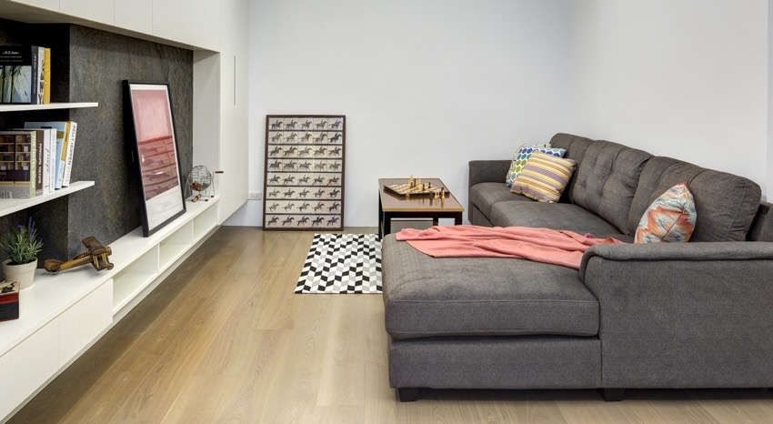 想要温暖度加倍,不妨从材质下手,譬如说满屋生活购物网站的「透气短毛绒 L 型沙发」,采用不退流行百搭灰褐色,呈现温柔和谐的整体配置,并透过 L 型的加大宽敞设计,适合全家人一起放松欢笑、舒展身躯的开放式空间,再搭配柔软舒适的触感,拥有让人久坐不想起身的魔力。随着季节更迭,再挑些抱枕、披毯、地毯、角落抢眼单椅营造软性氛围,或者透过原木茶几增加冬季暖和指数,而夏天时只需换成玻璃茶几创造清凉感,你看,家具混搭是不是很简单。