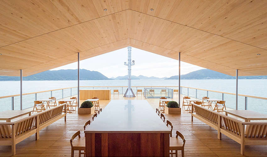 落日余晖,海面漾起细碎光泽、天空晕染一片梦幻紫红晚霞,若能就此住下岂不美好?日本广岛县政府即推出日式风格客船,结合在地文化、饮食特色与当地造船技术,同时找来知名建筑师操刀设计,期望透过邮轮推广濑户内海的山光水色。