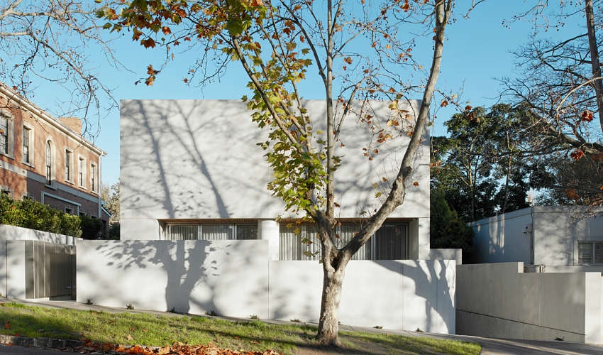 光影不只是生活所需,也是建筑的灵魂。位于林荫大道旁的住所,设计师保留纯净朴素的外观,让大片光线将树影映照于纯白立面,形塑出美丽剪影效果,也可维护私隐。