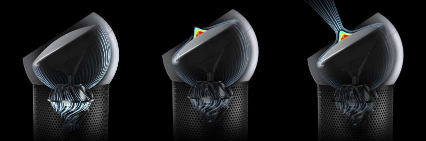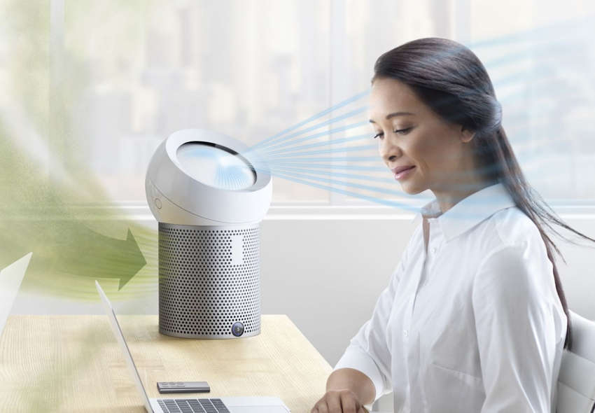 除了吸力表现出众吸尘器,全方位考量个人体验空气清净机,此款清净机不仅外型精巧,放置在床头或个人办公桌也不会遮挡阻碍,主要运用 Core Flow 技术,透过中心高压汇集一股强劲气流,借以往凸面穿透推进,产生凉风让身体保持舒爽之余,还可精准调控清新空气流向。