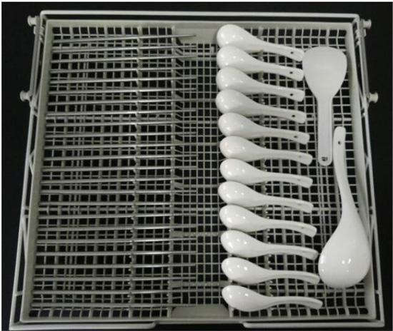 根据消费者比较关心的洗碗机的性能项目,本次测试选择洗净性能、干燥性能、循环耗水量、循环耗电量和漂洗性能(洗涤剂残留率)作为检验指标进行验证。考虑到消费者在日常使用中的餐具类型的多样性,在本次测试中增加了一套异型餐具与标准餐具一同测试。
