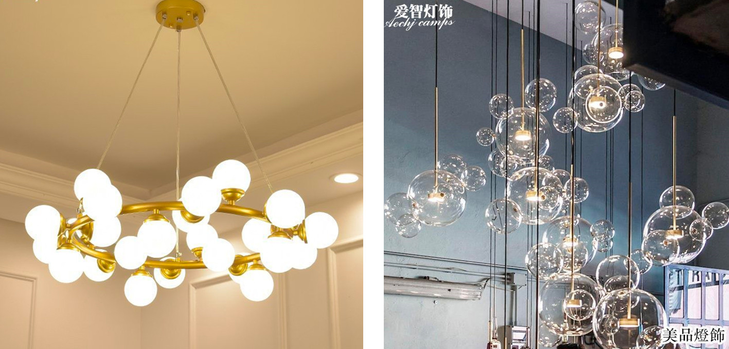 另外受到纽约设计师 Lindsey Adelman 设计的分子灯启发,以透明玻璃球为元素的延伸款式受到市场欢迎,为现代空间加入一点精品质感。