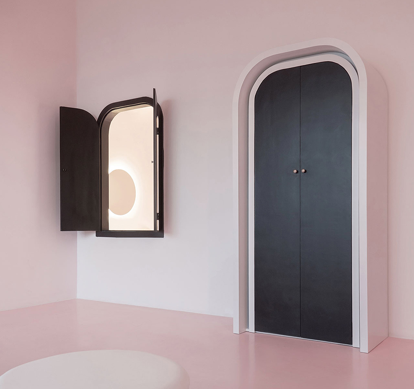 并导入「屋中屋」手法,将两间卧房与浴室独立隔划,房内承接拱门造型收纳现代设备与衣物,完美诠释简约迷幻情境,好似与平淡无奇的日常道别。