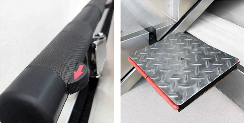 使用时,只要按压上楼的符号按键,便会自动弹出电动拖台,接续按下手把钮便会往上攀升,同时贴心配有智能感应讯号,主动通知下一梯段启动弹跳,减少等待时间,简约轻盈的踏板,不只不影响旁侧上下楼走动,甚至最多可承载 150 kg 的重量,使安全的通用设计,减轻不少脸红气喘负担。
