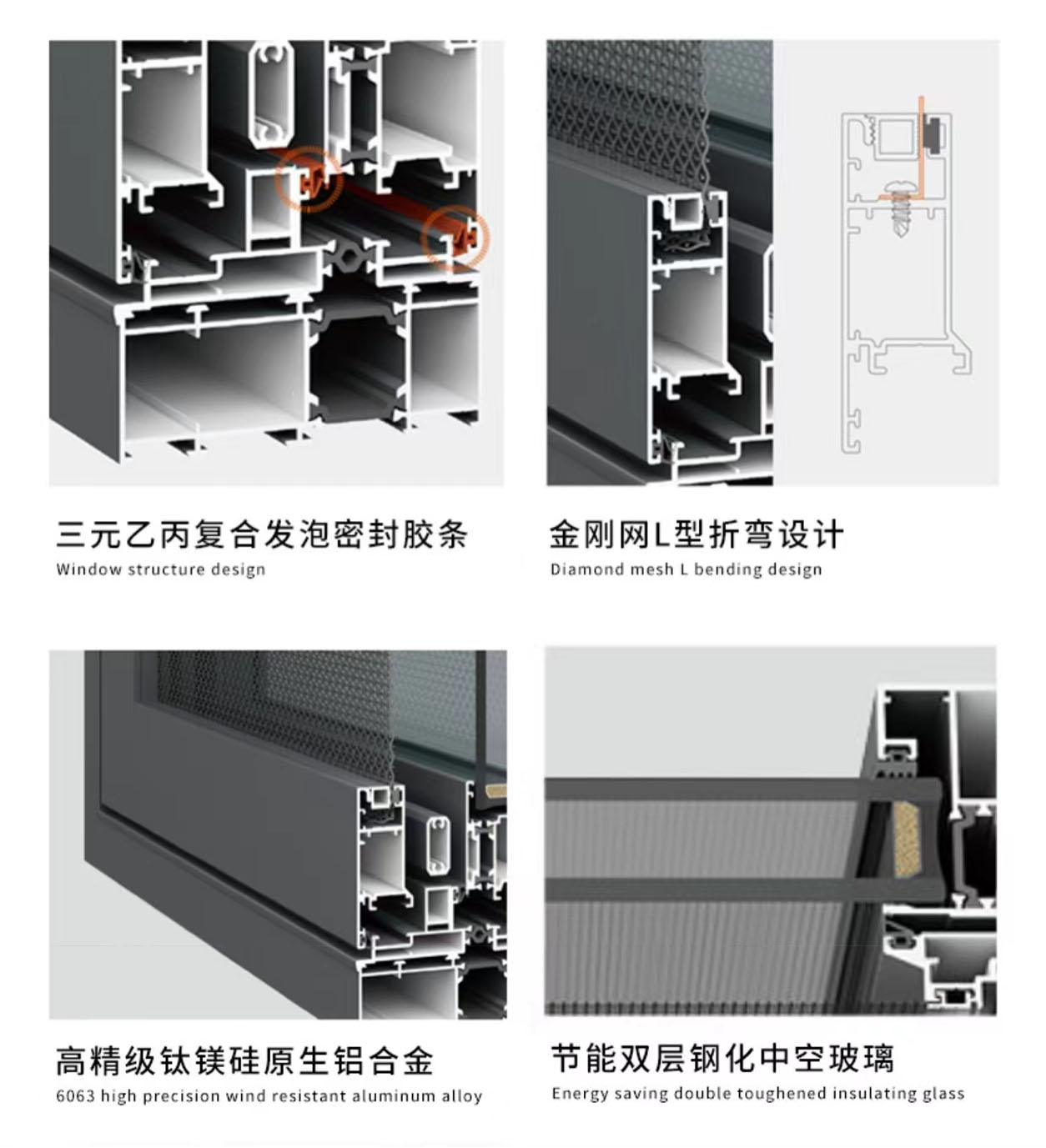 4.智能电动窗:通过智能系统控制窗户的开启和关闭,提供便利性。适合需要随时控制窗户状态的情况。推荐选择断桥铝窗且选择75系列以上的型材。