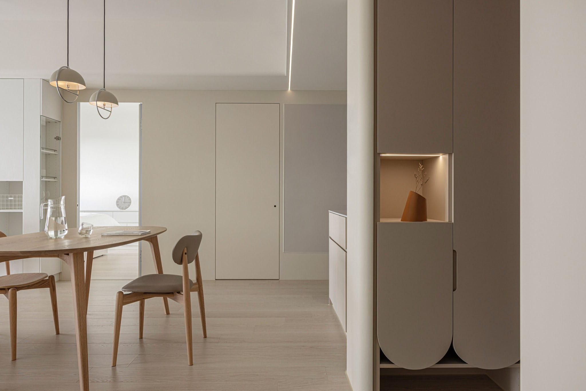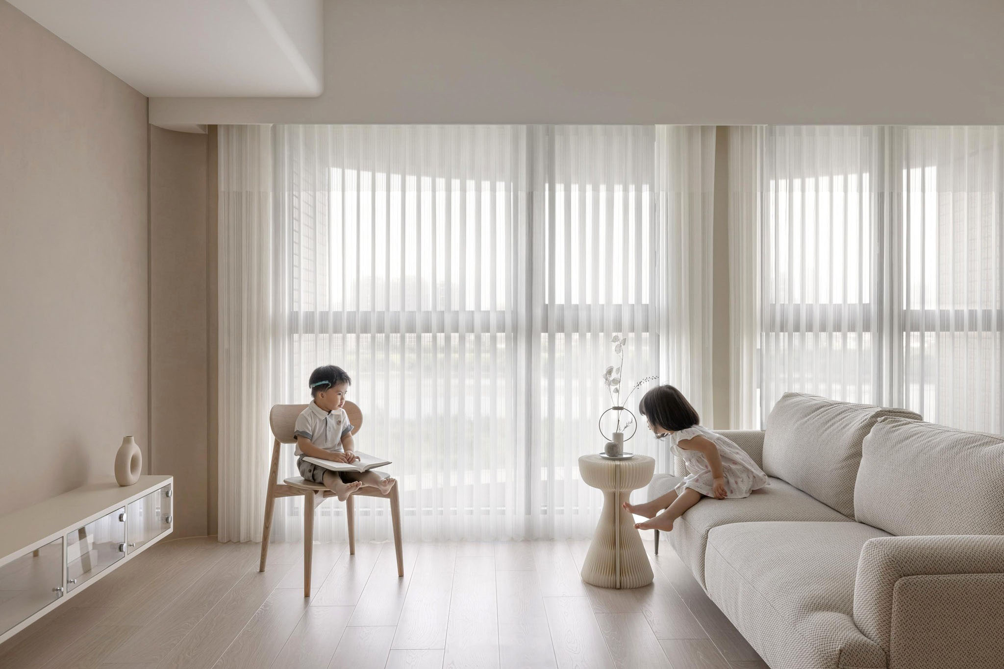 在这个家里,我们创造了一个特别的空间,一个专属于孩子们和我们的特殊关系的地方。这个家装充满了奶油风的元素,以柔和、輕盈的弧形细节为主,让我们的家变得温暖而舒适。