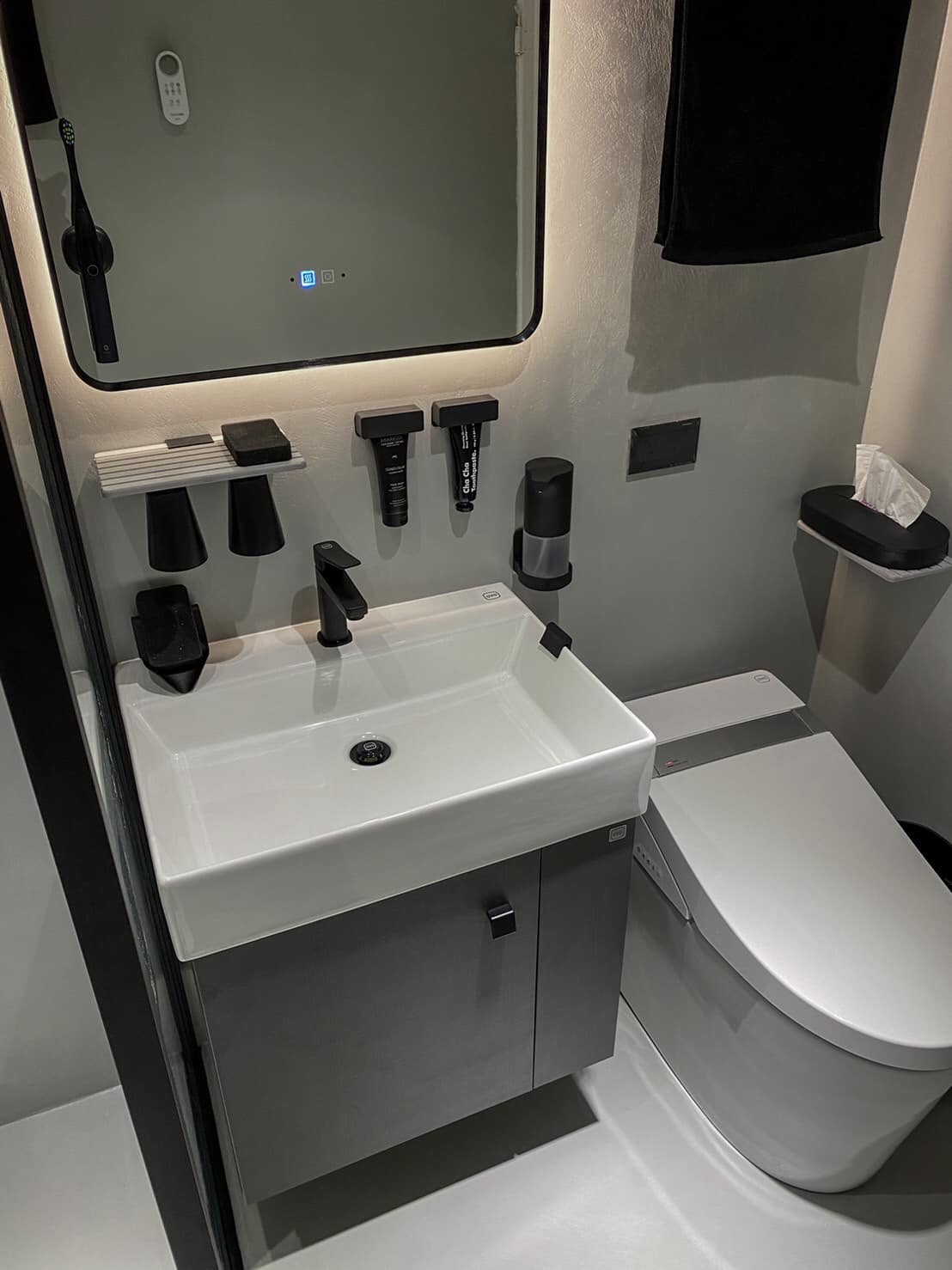 意大利水性环保涂料: 硬度达9H,面涂成份为大理石粉,经打磨至细致止滑面后,上3次保护防水,除了稳定中涂,上3次2K防水是确保防水功用哦~