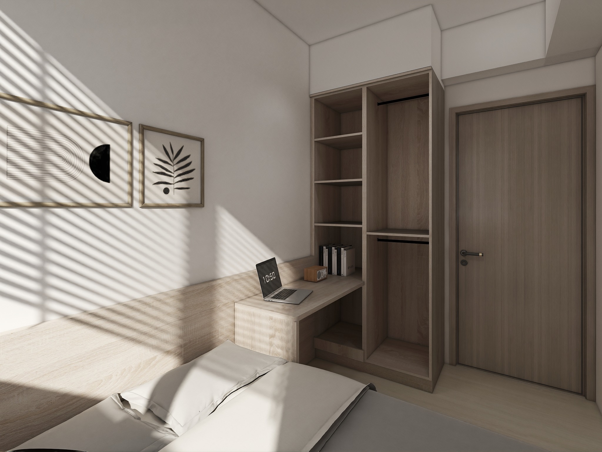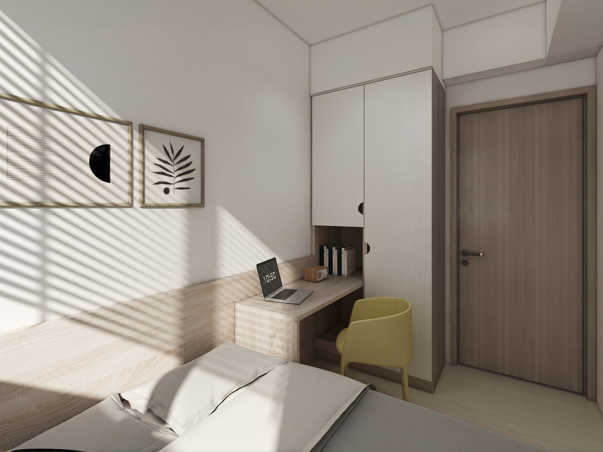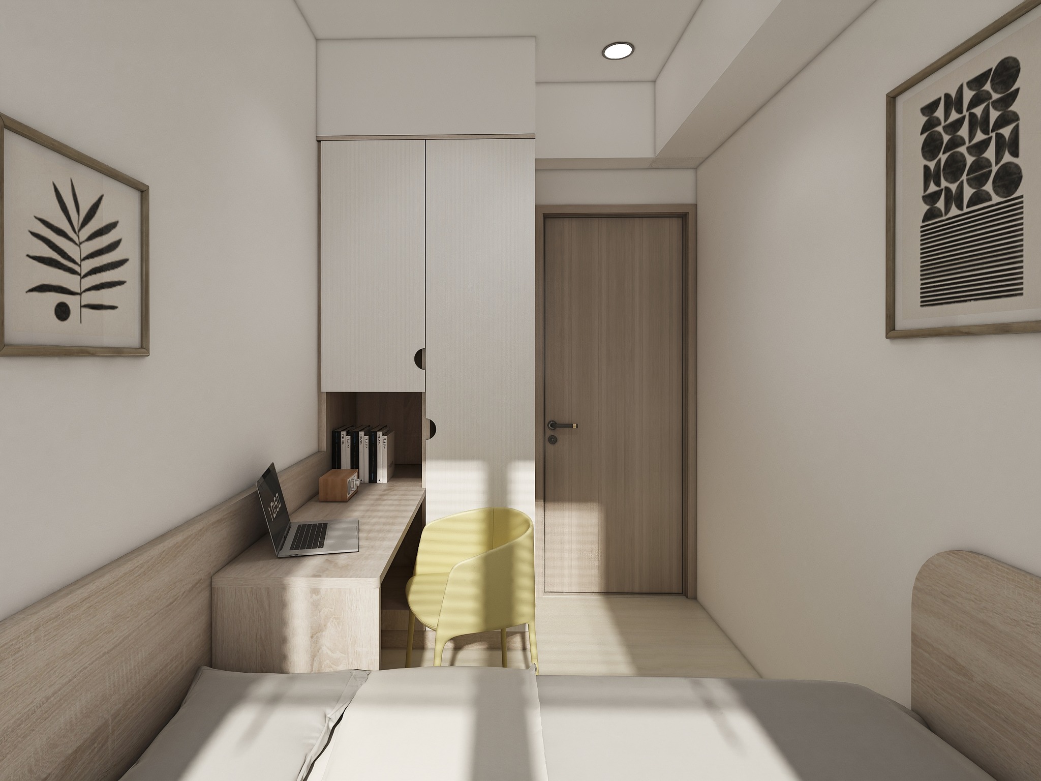 床头柜:在床边放置一个小型床头柜,用于存放夜灯、书籍和其他必需品。
