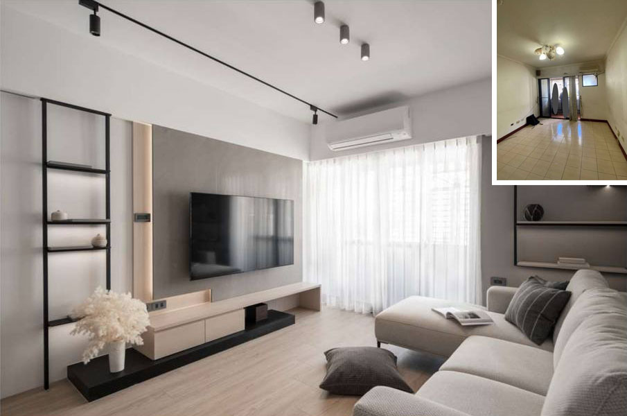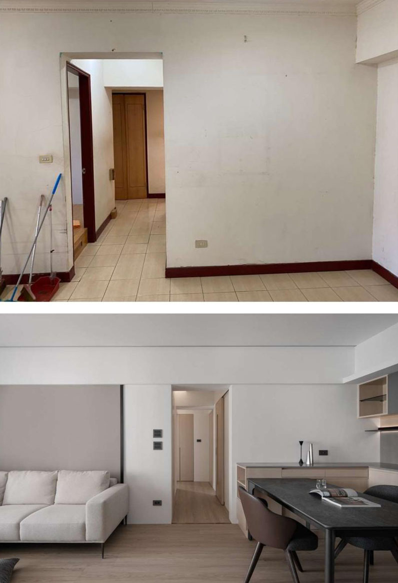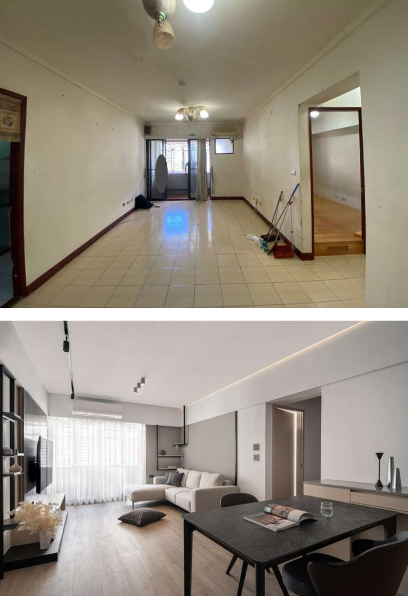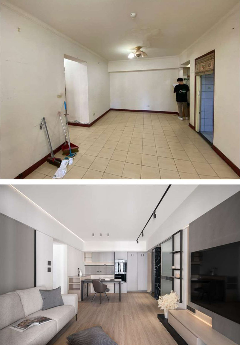 在装修前,客厅是一个普通而拥挤的空间,没有太多特色。然而,装修后,客厅焕然一新。我们采用了黑灰白的搭配,单一的木色,以及线形灯和石墙的结合,创造出时尚而温暖的居家空间。光影在自然与人造之间交相辉映,使每一个角落都充满了正能量。