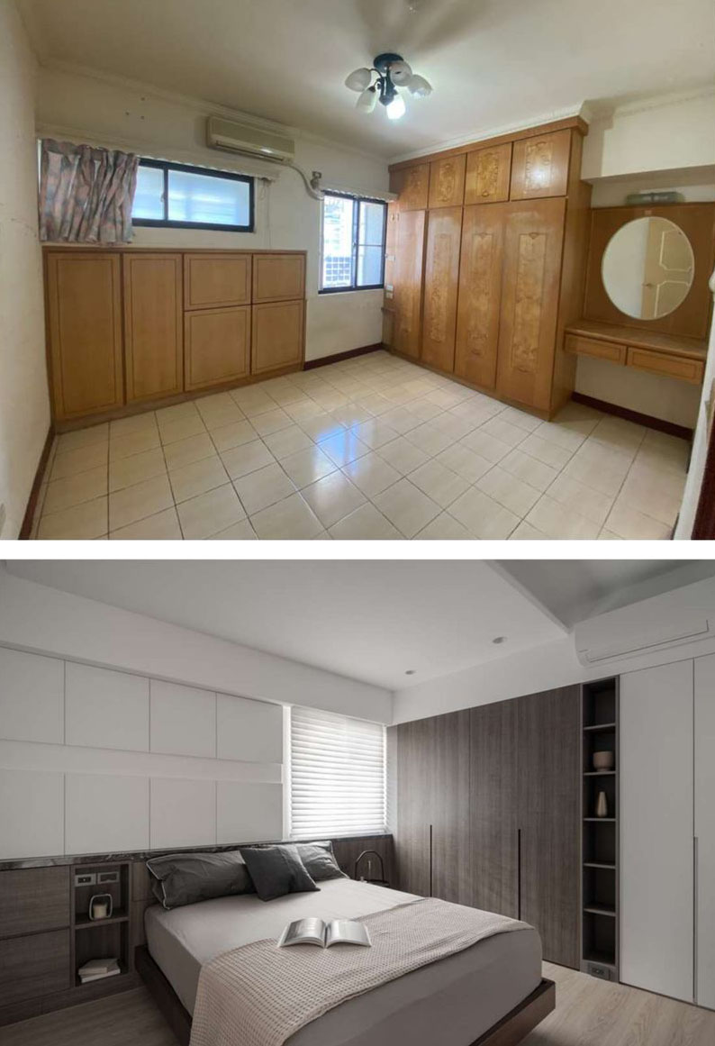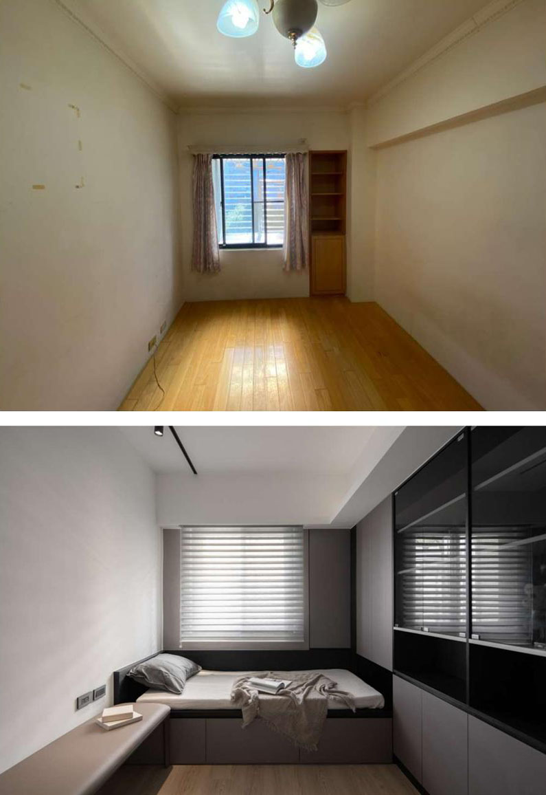 卧室是私人领域,经过装修后,它变得更加宁静和温馨。主卧床头采用软包和线形条灯,横向延伸,扩大了视感。定制床榻和床标充分利用每一寸空间,满足了功能和美观的需求。大衣柜经过精确的比例计算,材质之间层层相扣,呈现出美丽的效果。