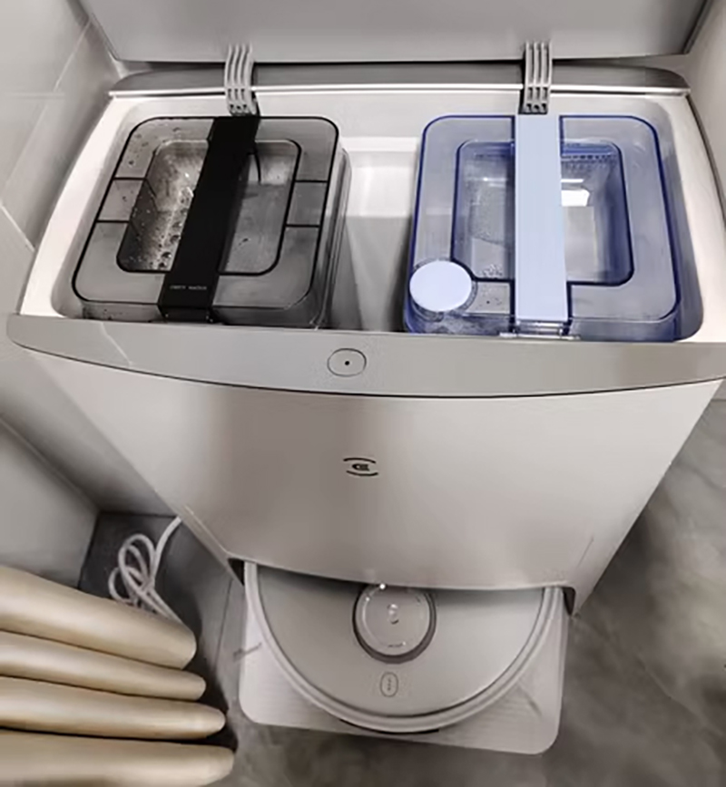 自动集尘:机器人尘盒满了会将灰尘自动转移到集尘袋中,免去频繁清理尘盒的烦恼。