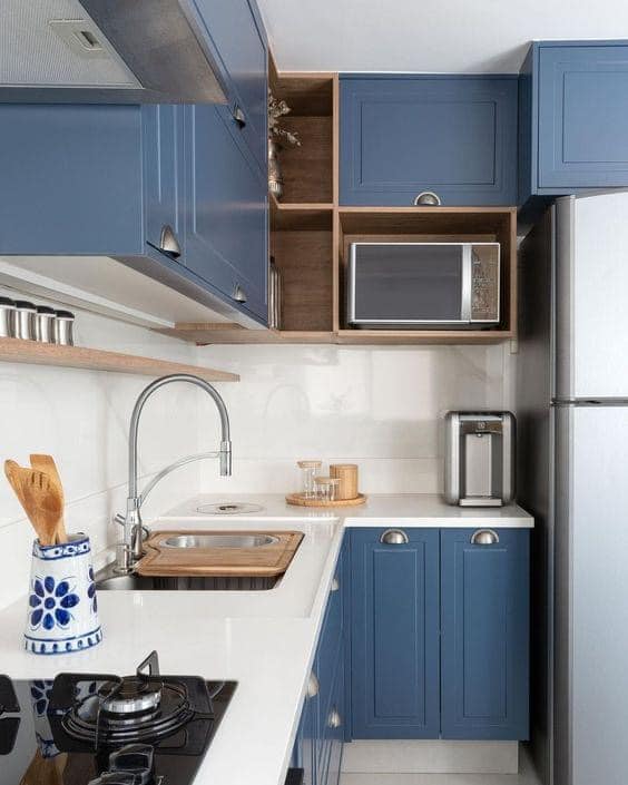 L型厨房布局通常涉及两面相邻的墙壁上放置厨房家具。这种布局通常非常有效,因为它最大程度地利用了角落空间。