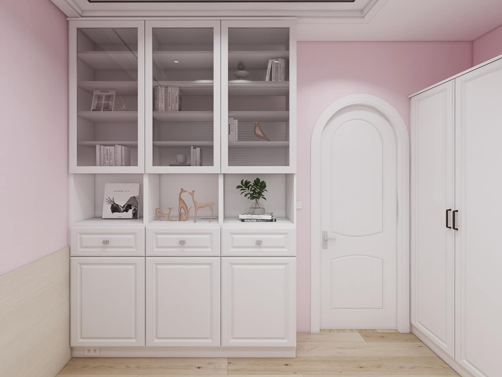 乡村风门板造型细致,搭配Hello Kitty粉红色,蝴蝶结把手。