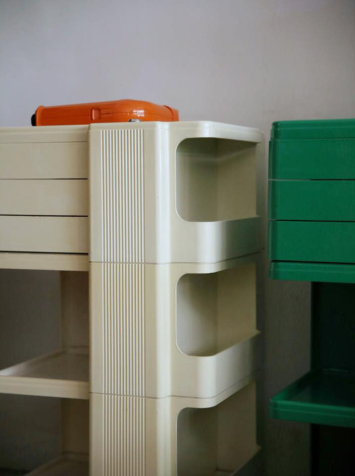 其中,您提到的Joe Colombo的Boby trolley是另一种1970年代流行的塑料收纳柜,因其独特的设计而广受欢迎。这些塑料收纳柜在家庭和办公场所都能提供实用的储存解决方案,并且因其设计和颜色而备受欢迎。
