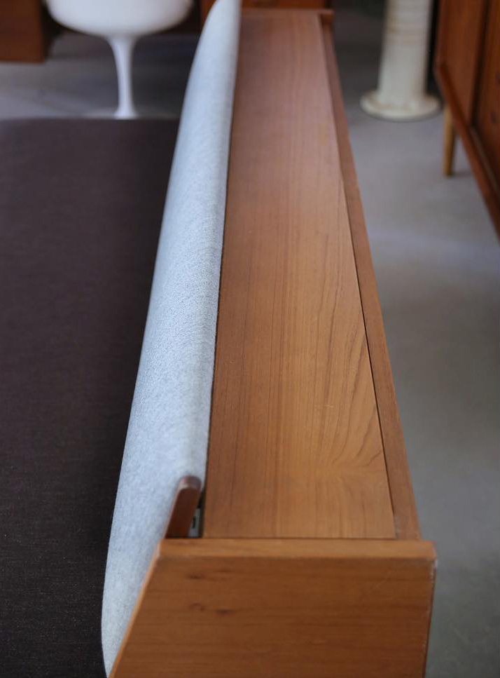 Hans J Wegner的Teak Daybed Model GE-258代表了家具设计中的经典之一,其极简的设计、清新的蓝色和靠背置物功能使其成为时至今日仍然备受追捧的家具之一。它的存在不仅为室内空间增添了美感,还为您提供了一个舒适的休息和放杂志书籍的地方。这款沙发床将一直屹立于家具设计的浪潮之巅,为家居环境注入永恒的魅力。
