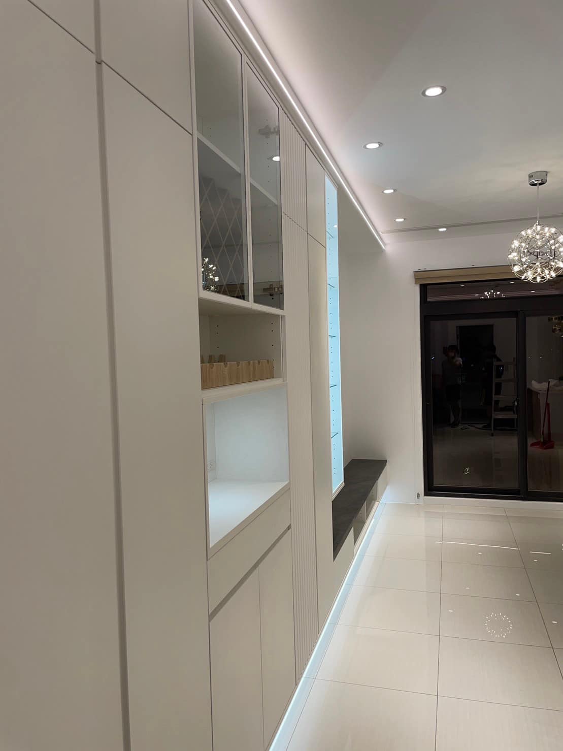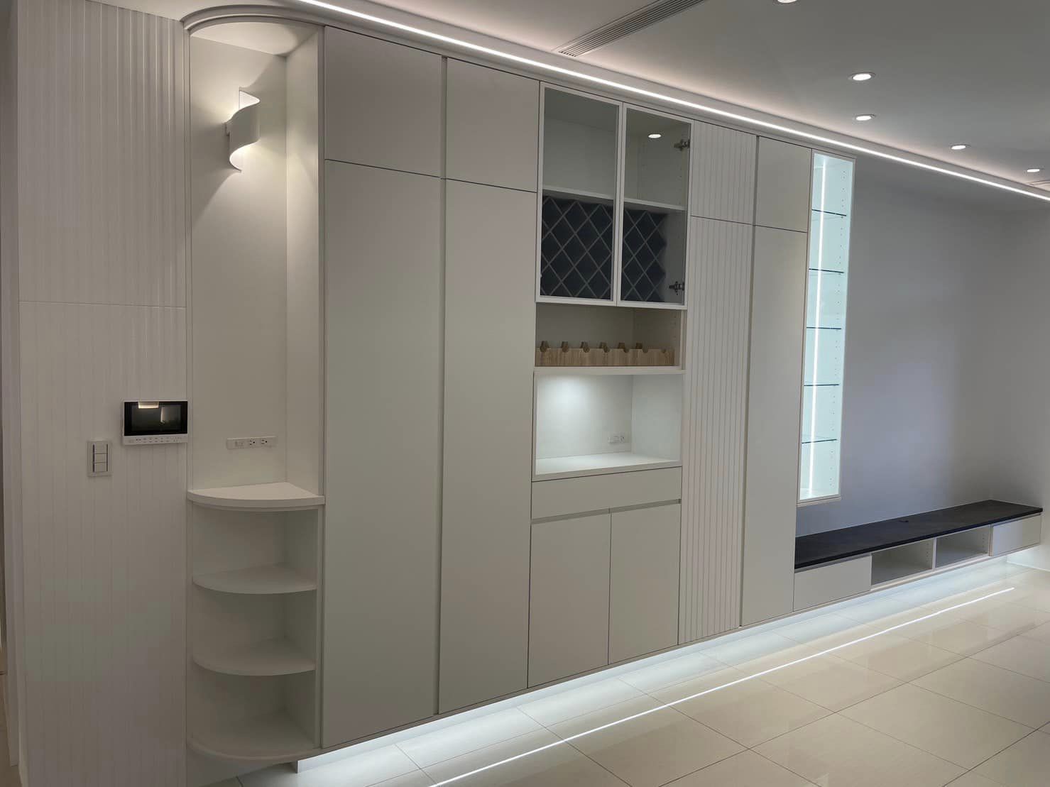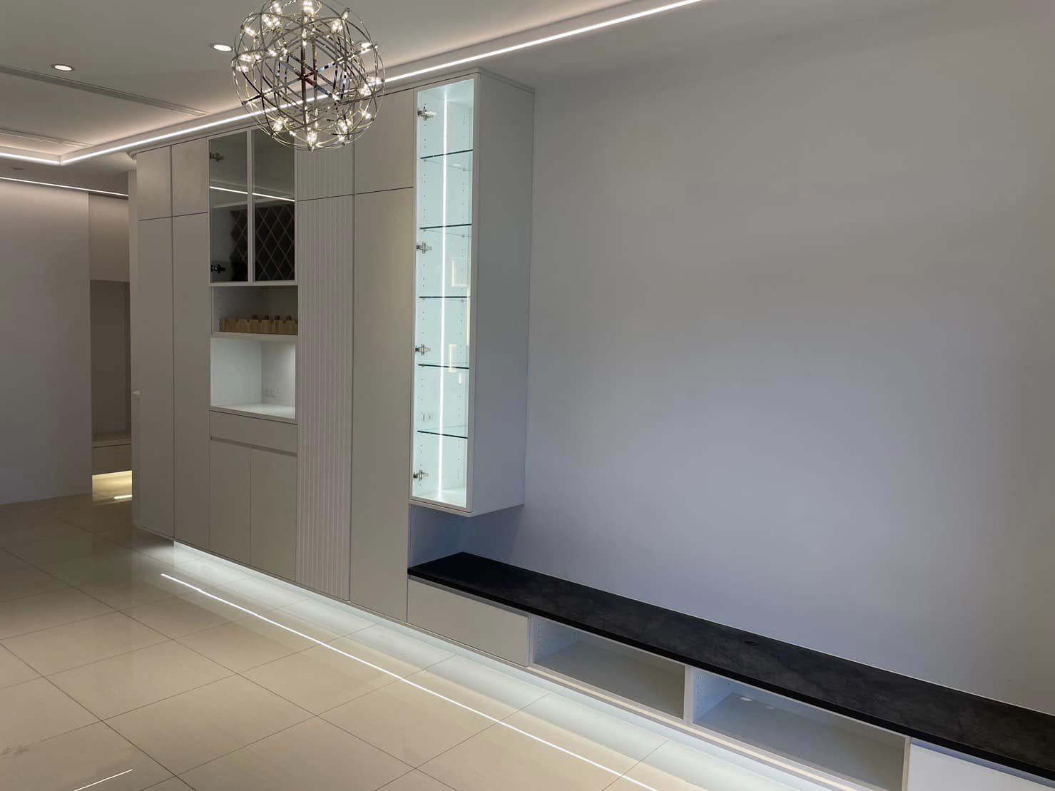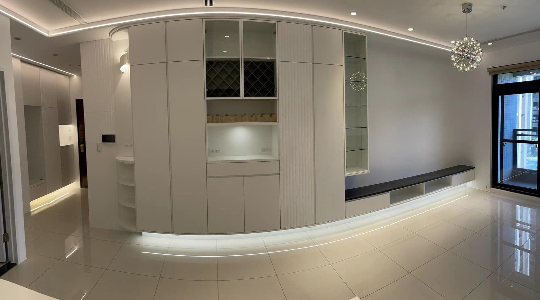 总体而言,这个客厅电视柜的完工不仅为居室注入了时尚和现代感,更体现了对细节的精心考虑。白色柜体搭配LED内嵌设计,使整个空间焕发出新的生机,为家居增色不少。这个设计不仅满足了实际使用需求,更为家居空间注入了浓厚的艺术氛围。