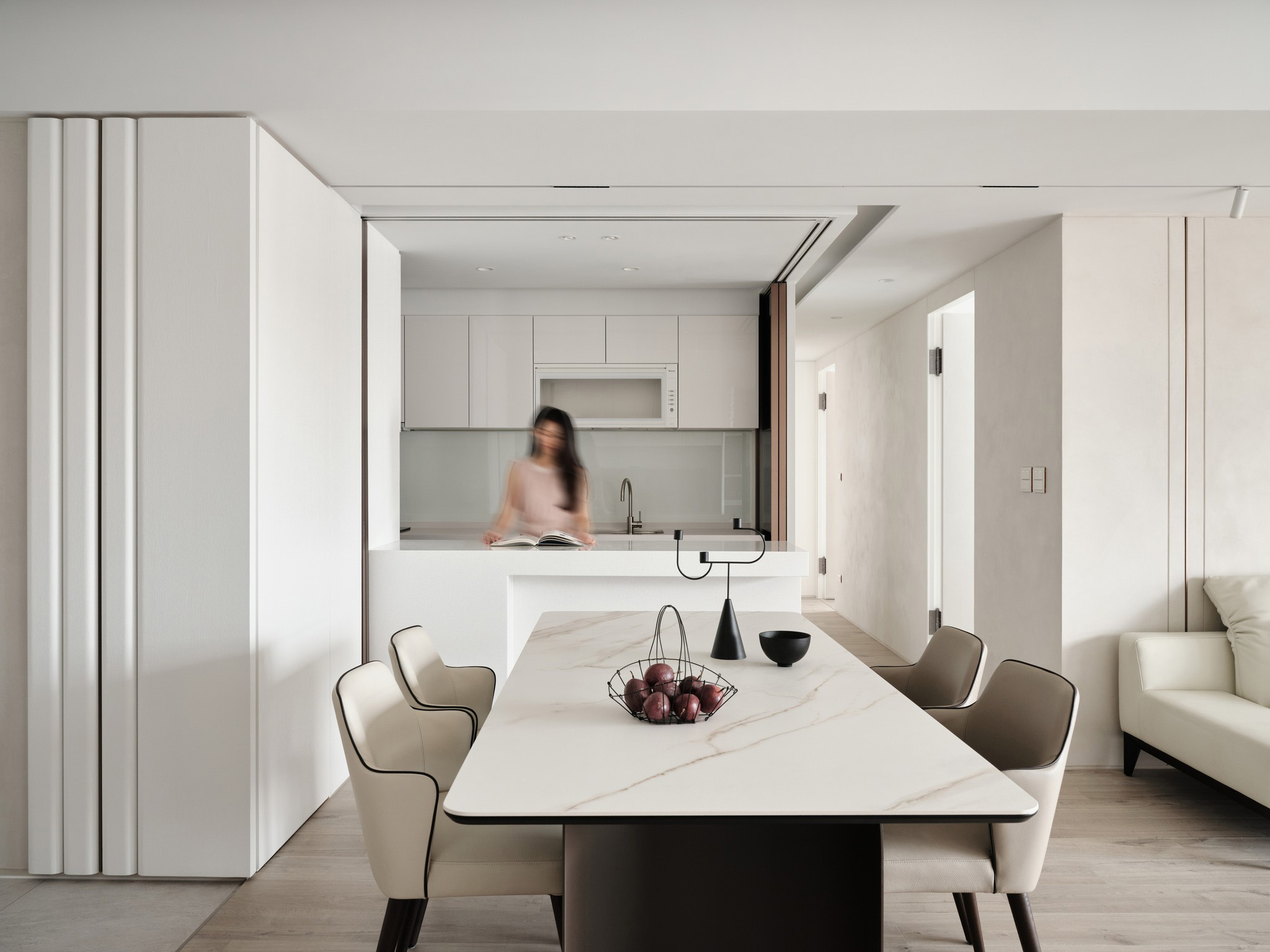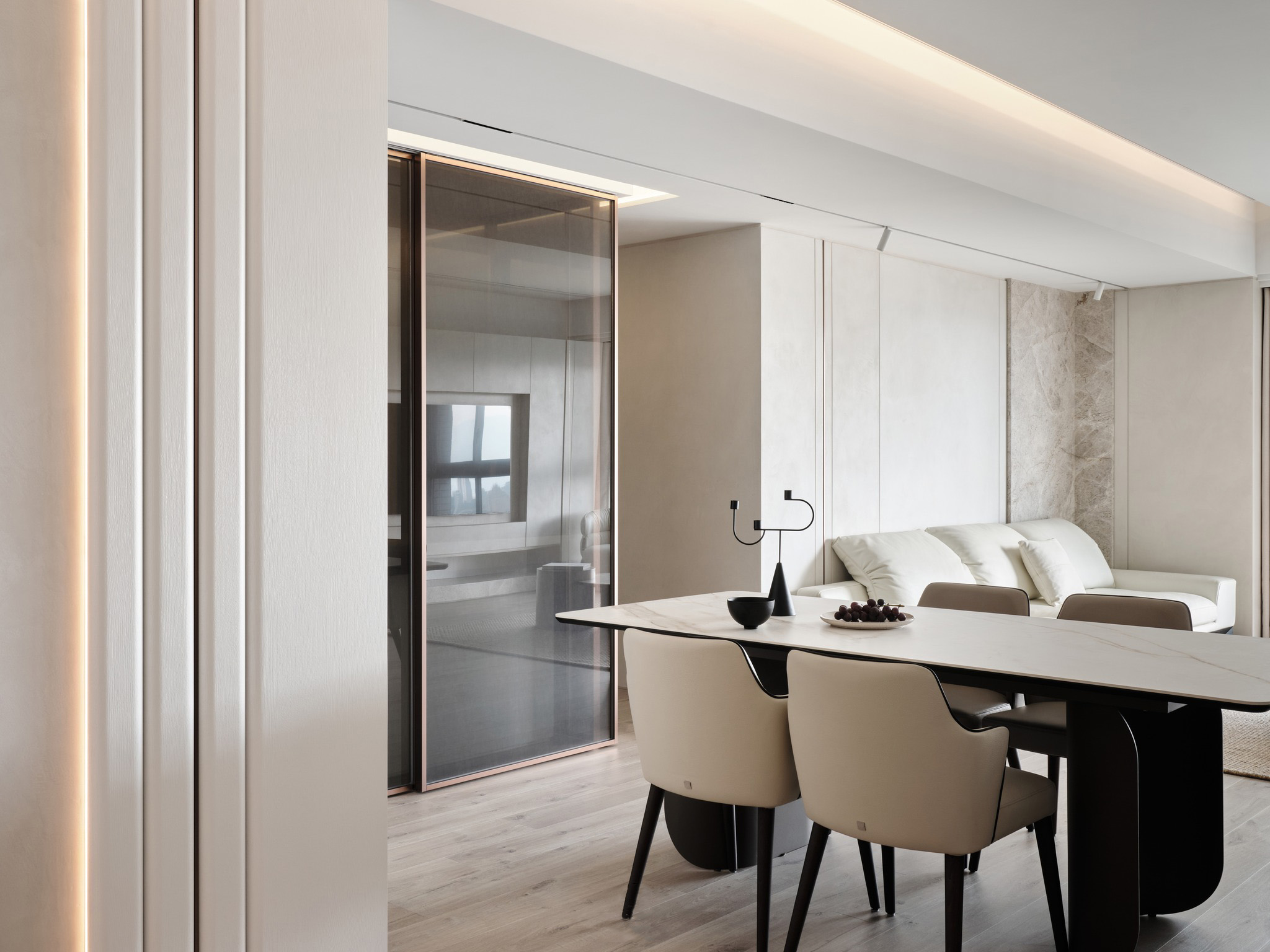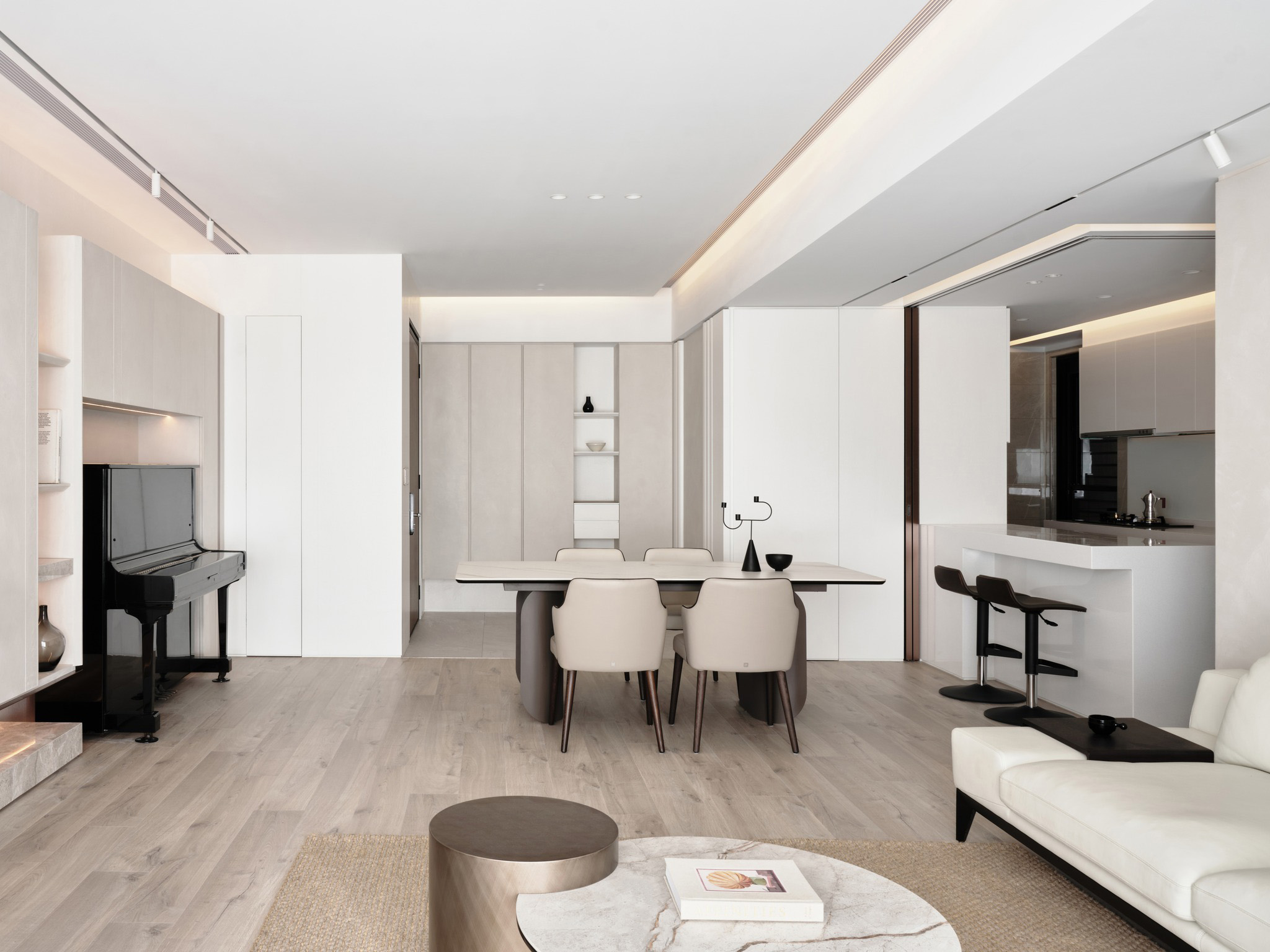 在现代俐落的块体与线条的精巧融合中,功能灵动地隐藏于无形,共同构筑一个舒适宜人的居住天地。