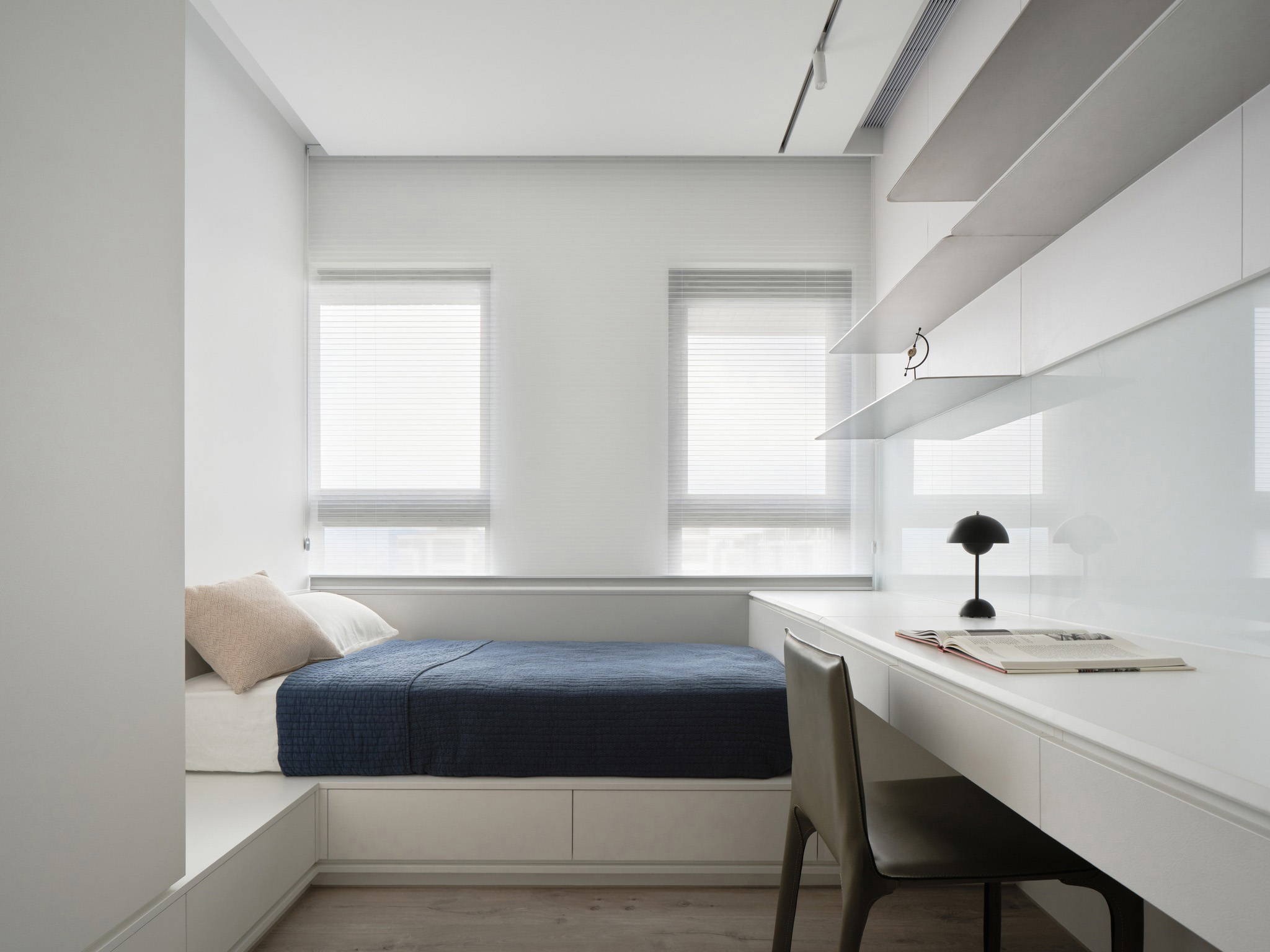 在脱离、悬浮、比例划分的结构中,整体空间更显轻盈,同时完美地融合了功能与美学的理念。
