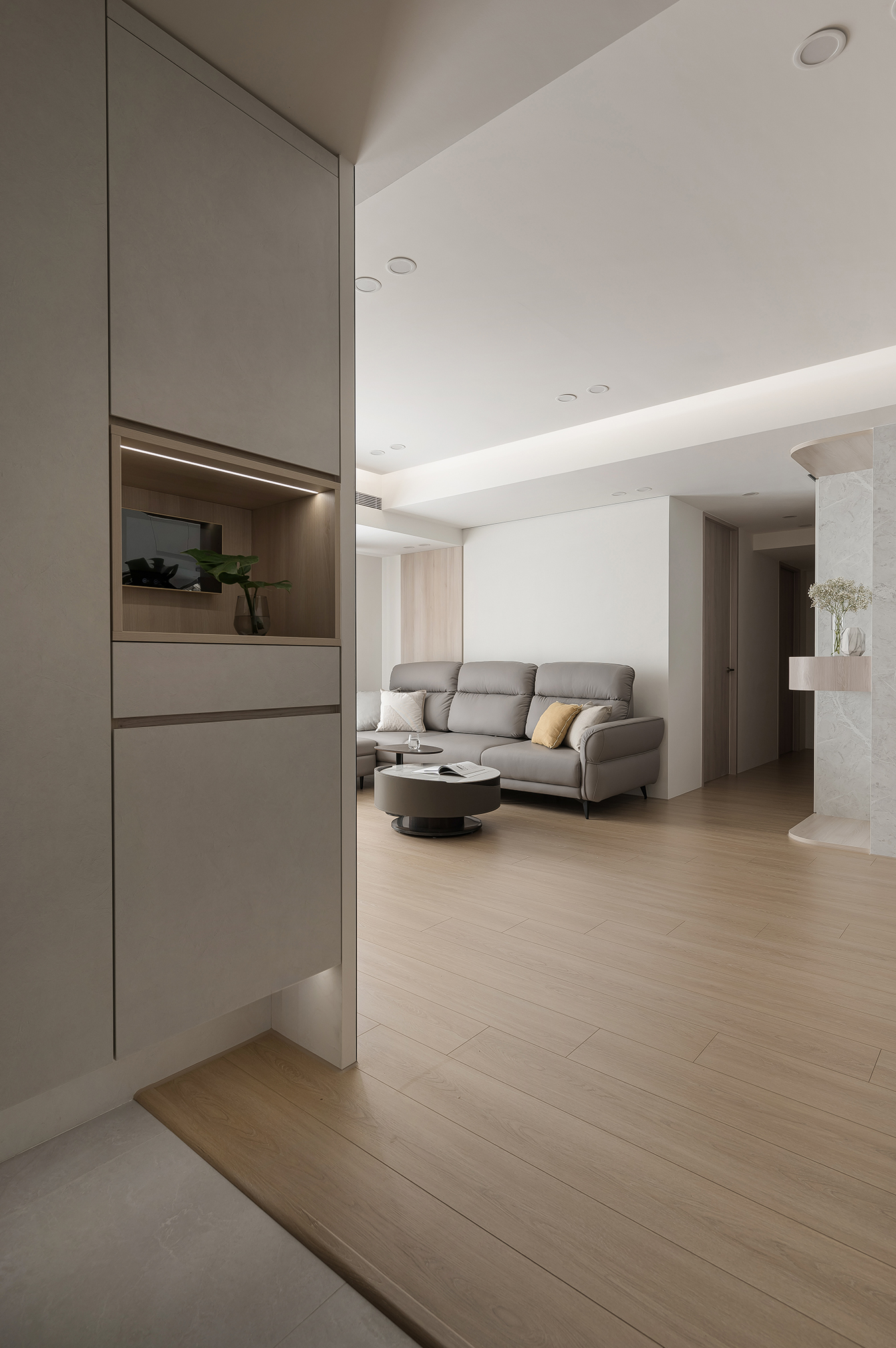 我们一直追求着简约主义的生活理念,通过将原木地板与奶白墙漆相巧妙搭配,打磨出了一个宜居又温馨的居住空间。