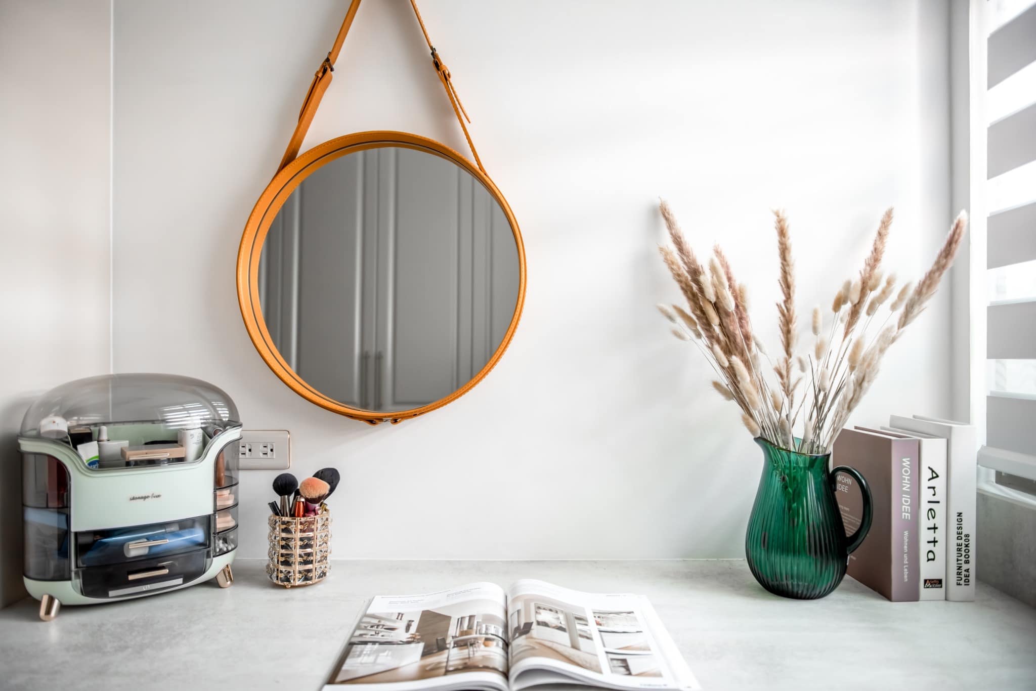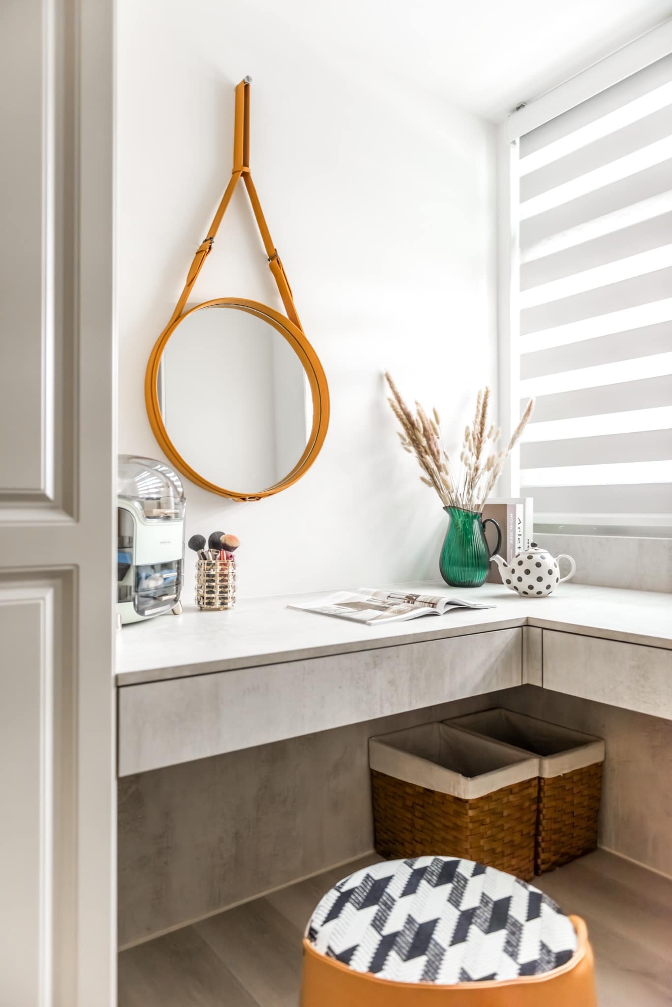 梳妆台的设计体现了对美的追求和细致入微的生活态度。镜面的运用使空间更显宽敞,同时为主人提供了一个独特而私密的美容角落。搭配简约而精致的储物设计,不仅方便了日常护理和化妆步骤,也让整个梳妆过程变得更加轻松愉悦。