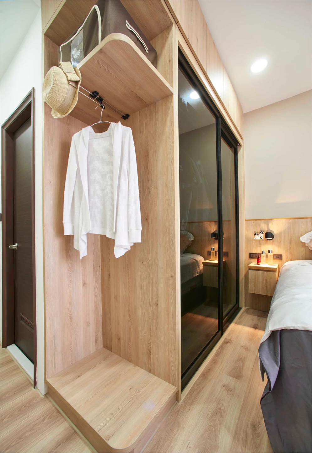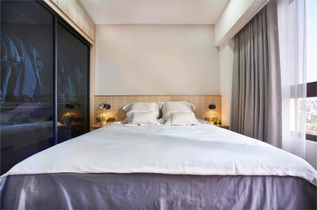 为了保有流畅的动线,选择推拉门的衣柜设计是明智之举。推拉门不仅能够有效地节省空间,而且在打开和关闭时都显得非常流畅。这一设计不仅方便了空间的利用,还为小卧室创造出更为整洁的外观。