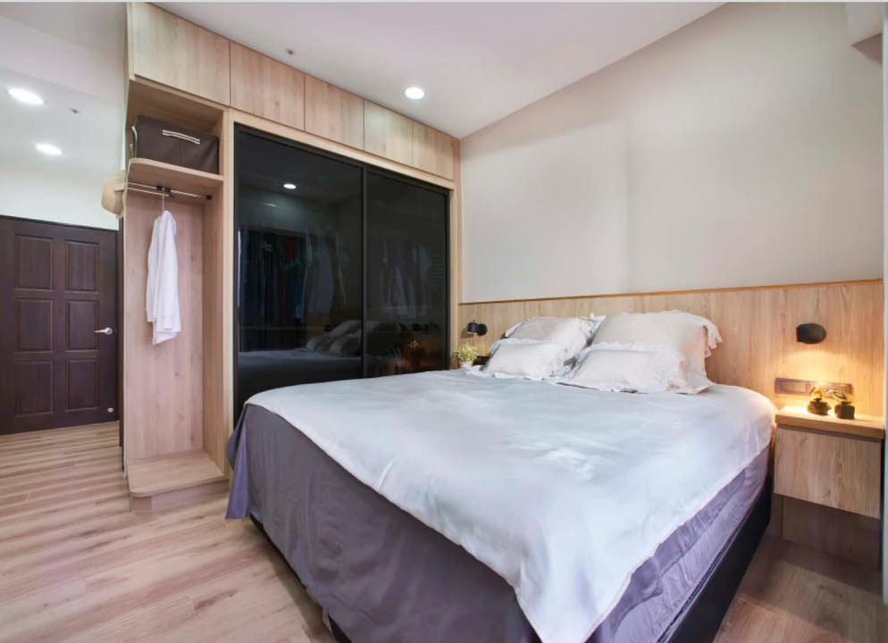 将床头柜设计为悬空式,可以有效地放大空间感。悬空床头柜既可以作为实用的存储空间,又在视觉上创造出一种轻盈感。这样的设计不仅使空间更为宽敞,还为卧室带来一份现代感。