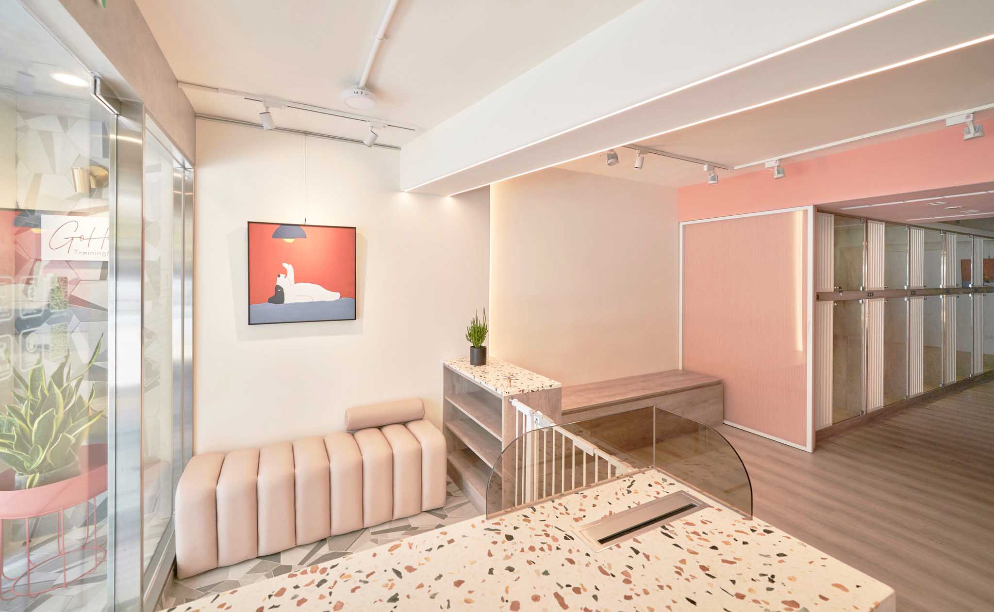 接待区的六角砖与柜台的水磨石相得益彰,让人一进门就感受到轻松活泼的氛围。