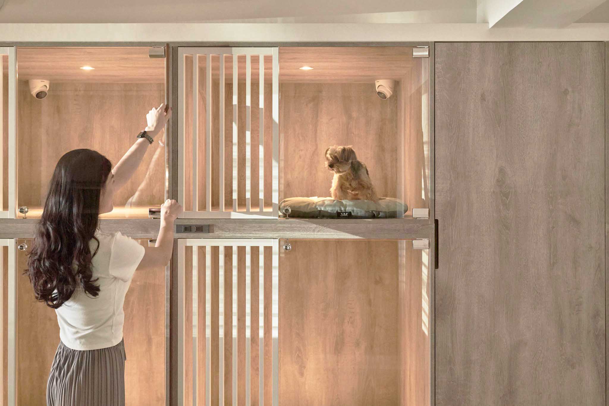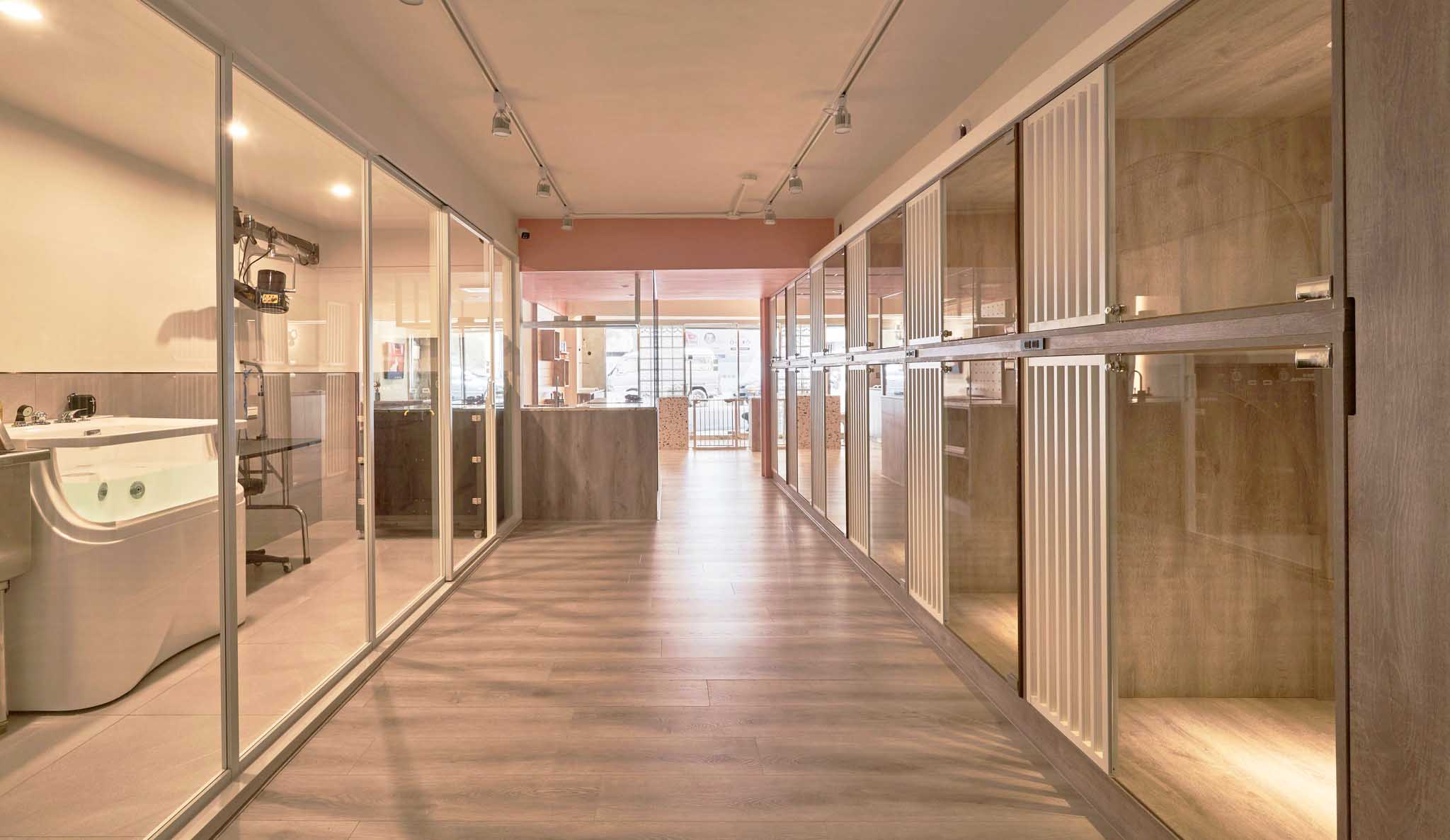 宠物住宿区和美容区根据宠物体型或相处情况灵活区隔或打通,提供宽敞的公共活动空间。