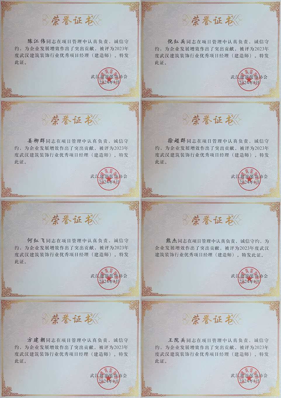 祝贺江南美装饰,荣获武汉建筑装饰行业“优秀项目经理”殊荣!