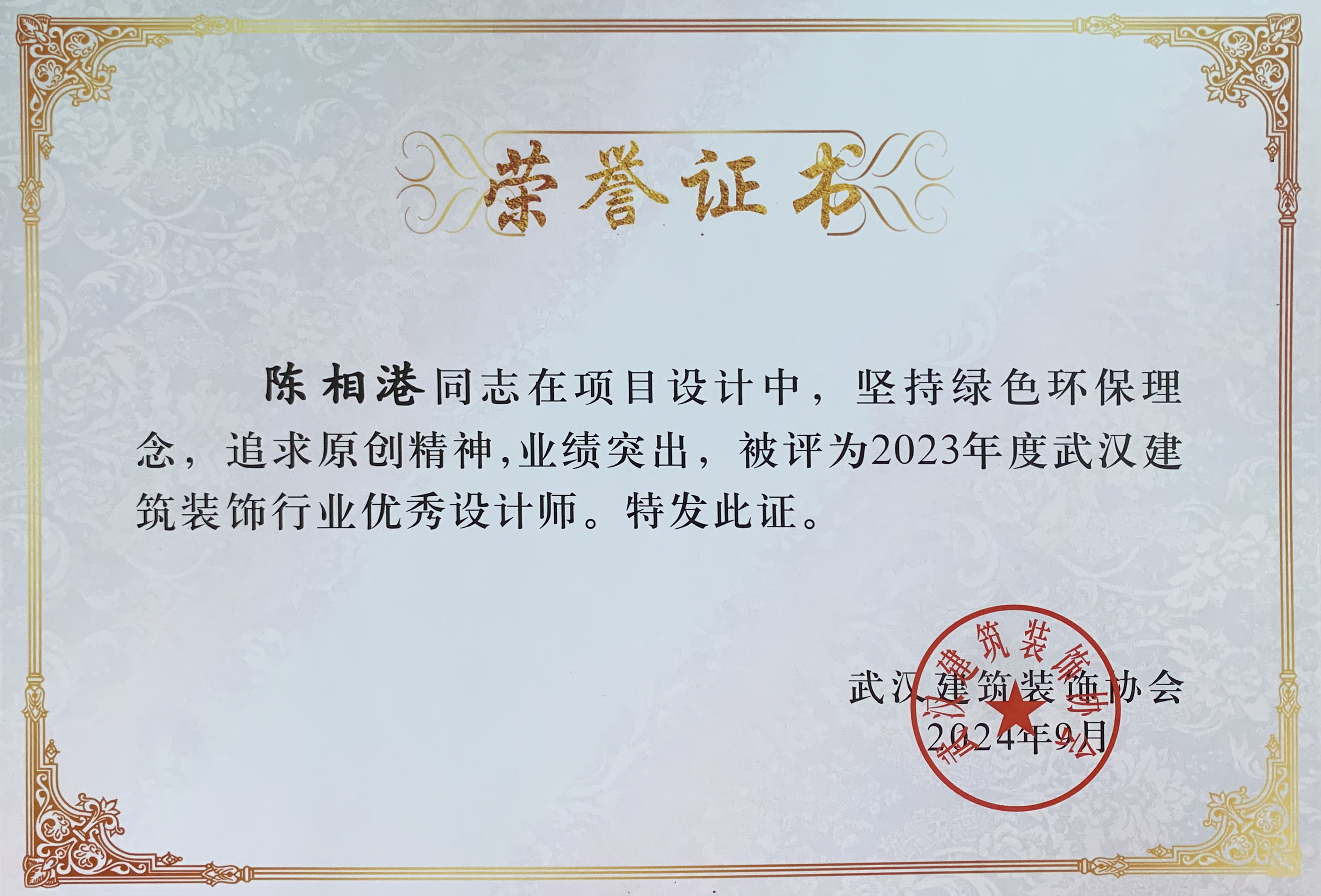2023年 - 评为武汉建筑装饰行业优秀设计师