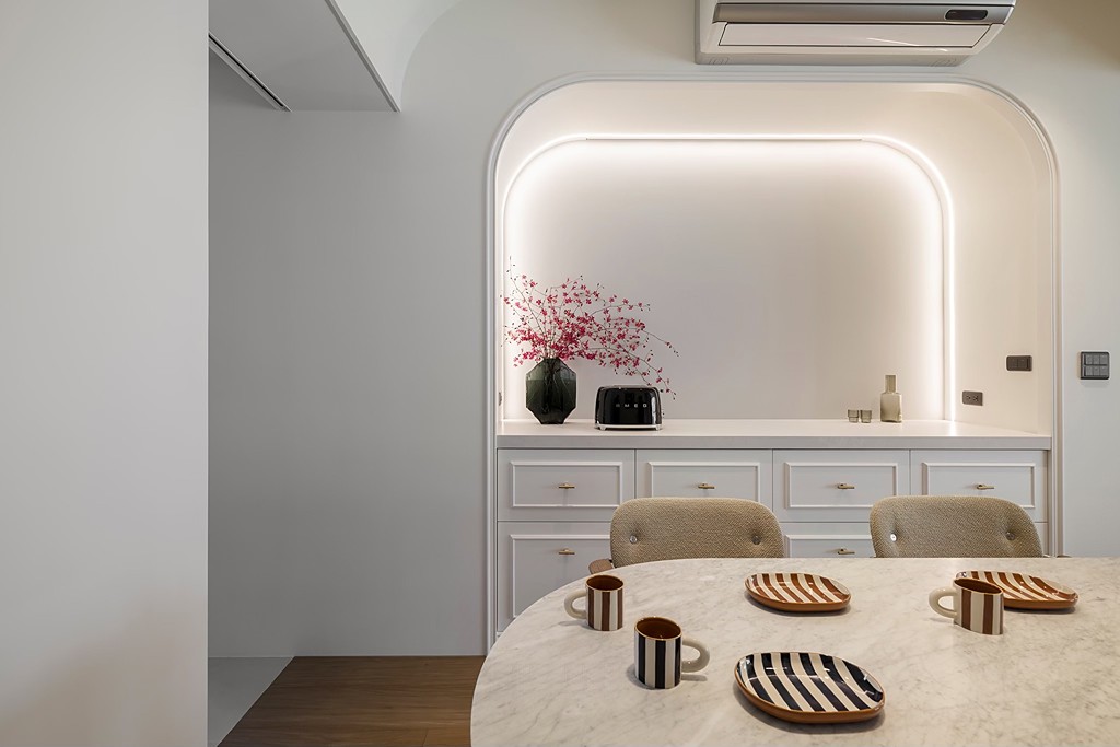 延伸餐桌空间,增设备餐柜,形成用餐、备餐、品饮和储物一气呵成的新生活体验。